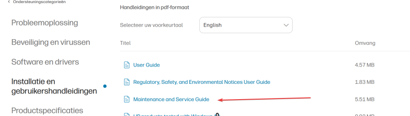 verander de taal keuze naar 'engels' bij 'installatie en handleidingen'