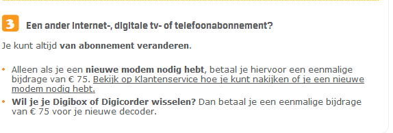 Ik zou wel willen veranderen van abonnement maar om persoonlijke reden vinden ze hier die éénmalige 75€ net iets te veel in het dure belgenland.( om over te stappen naar fibernet )