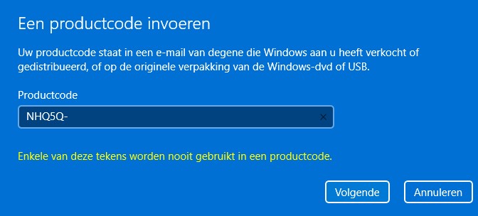 Tijdens de nieuwe installatie van Windows hebben ze mij nochtans nooit gevraagd om mijn Windows Licentie te activeren of in te geven.