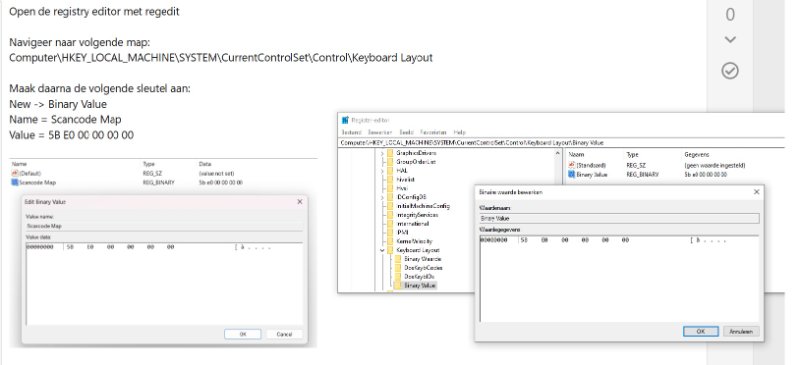 heb dit allemaal gedaan , maar toch werkt die windows knop nogOpen de registry editor met regedit
