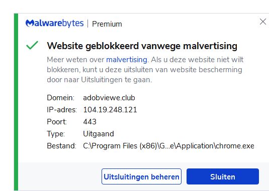als ik op sommige sites ga , bvb VRT , of Media Jury , ZELFS op jullie PC Tuts krijg ik iedere keer deze melding van malvertising van MalwareBytes premium