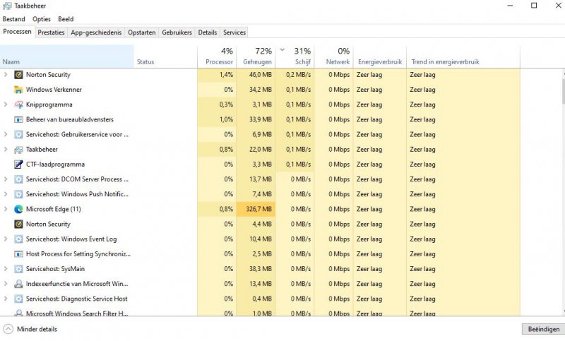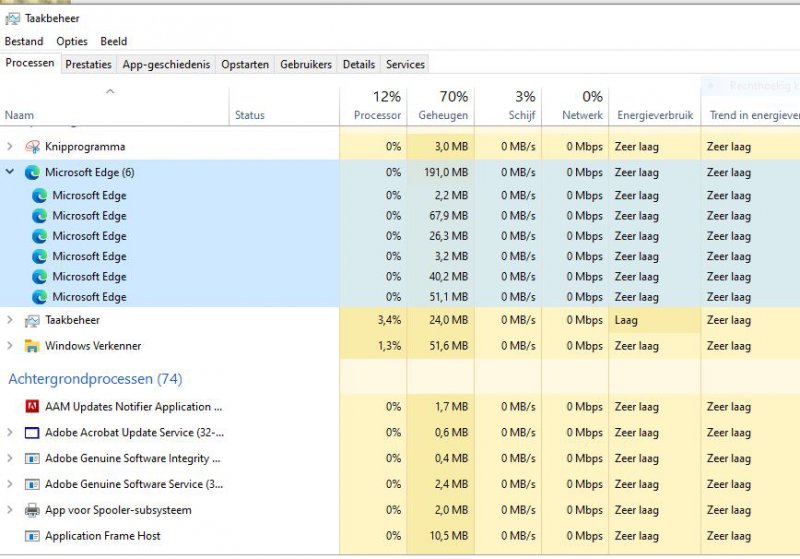 Alleszins : meerdere processen voor Edge is normaal hoor : is eigen aan browsers die vb. voor elke tab die je opent een proces openen en nog voor andere zaken ook. Voor Chrome vb. kan dit tot meer dan een tiental threads leiden.