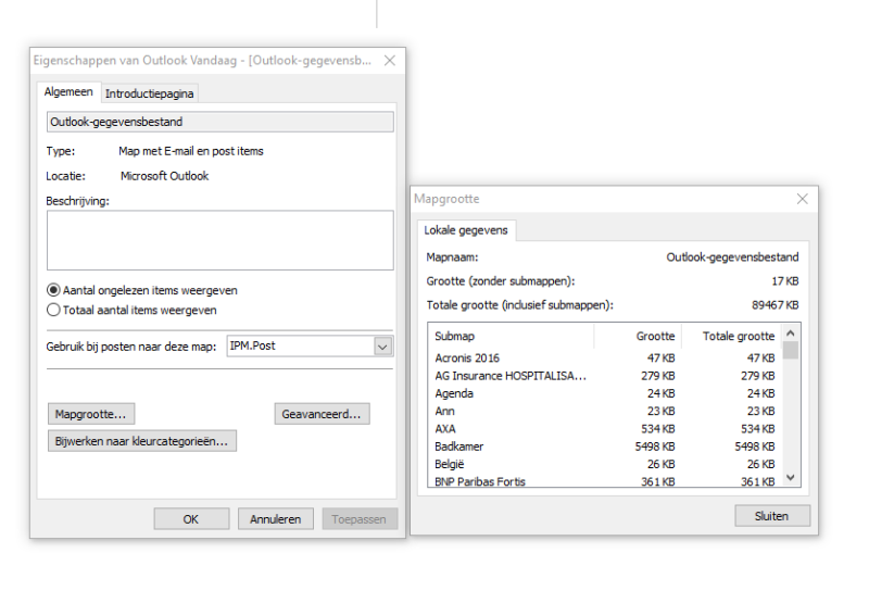 Ik wou het eerst zeker weten, vooraleer ik mijn mails en gemaakte mappen met mails gemaakt in het Outlook gegevensbestand allemaal kwijt zou zijn.