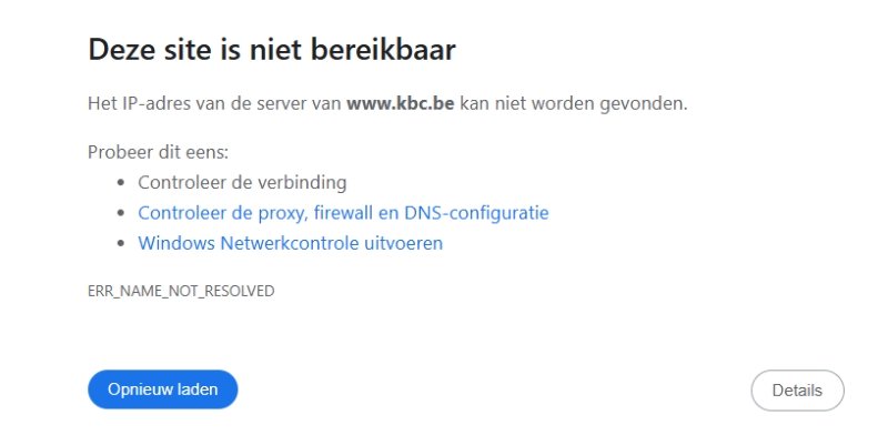Websites van banken, restaurants, proximus, telenet, ... niet.