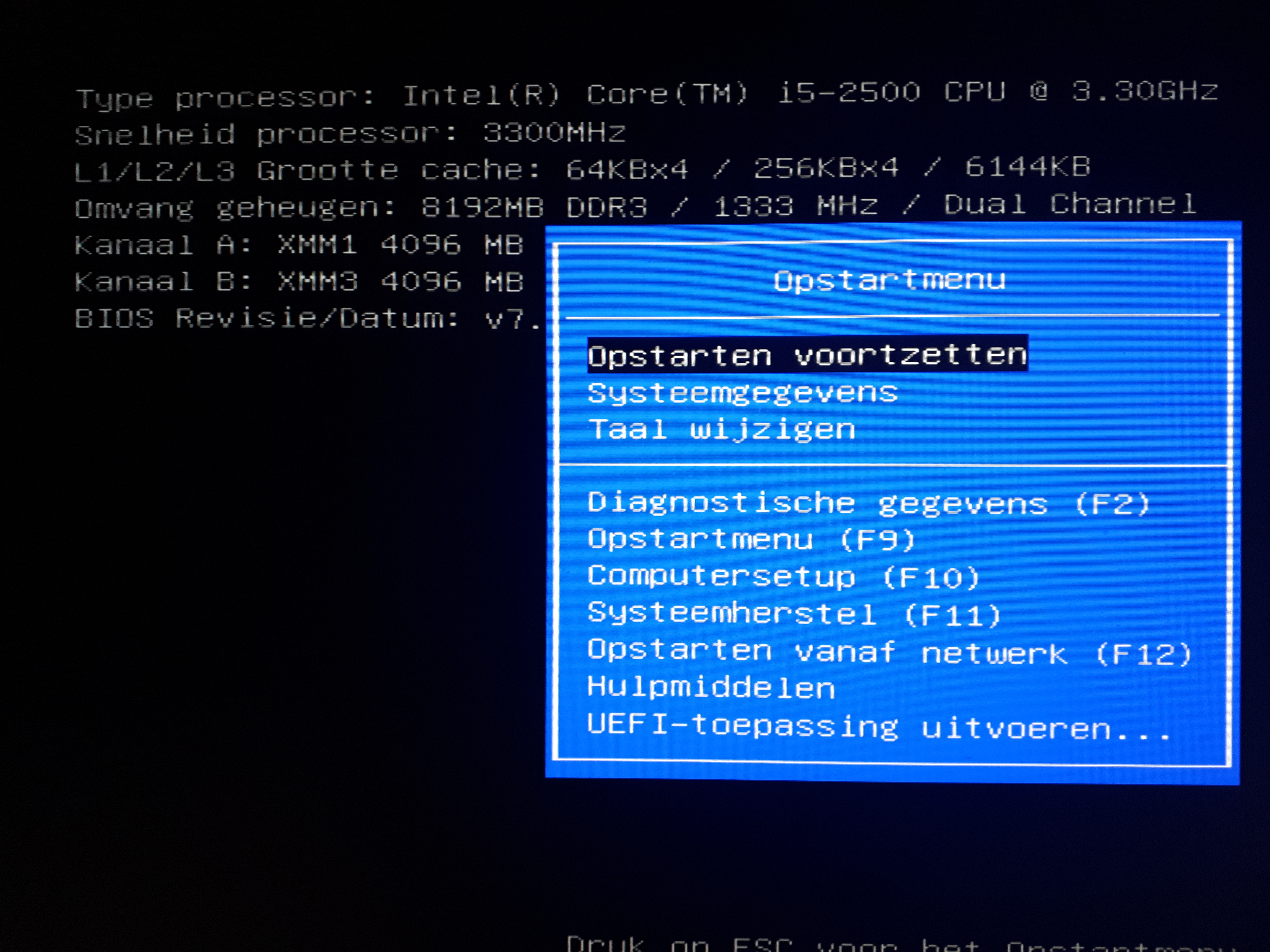 Dat ga ik volgende week proberen , mijn ssd schijf ligt nog bij bpost , ik was vrijdag niet op tijd terug en daar kan ik ze gaan halen vanaf 11 u maandag , ze zijn nog thans open om 9u30 .wat gebeurt er indien je deze F9 gebruikt … denk dat je dan verschillende bootopties kunt selecteren en indien je opstartbare usb stick aangesloten is dan word deze daar wellicht ook vermeld .