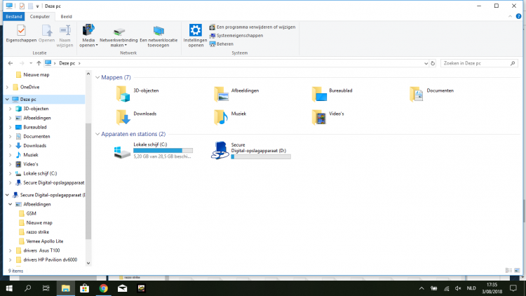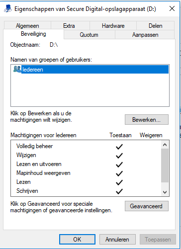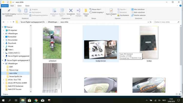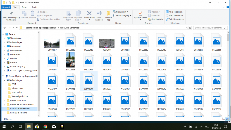 We zijn net terug van een deugddoende reis van net geen 3 weken, maar daar gaat het niet over. Mijn vrouw maakt heel graag foto's, maar om de foto's niet kwijt te raken neemt ze graag tijdens de reis wel een backup. Dat doen we al enkele jaren op mijn netbookje. Ik heb er al gehad die draaiden op Android en op Windows, maar steeds lukte het wel. Maar echter dit jaar konden we ze enkel opslaan op mijn zowiezo veel te kleine "C", wat dus totaal niet de bedoeling was. In het begin lukte het allemaal wel om de foto's op te slaan op mijn "D" die een micro SD kaartje van 128 GB is, waar nu met de foto's die we er wel op hebben kunnen zetten nog 122 GB ruimte over hebben. Dus ruimte zat over nog, maar het lukt totaal niet meer om nog foto's op die micro SD kaart te zetten. Willen we dan bv een foto die nu op die "D" staat bekijken, dan opent het wel, maar krijgen we een heel wazige foto te zien. Totaal onbruikbaar. We kunnen ook niet bv een foto van daar selecteren om op Facebook te zetten. Die zegt dan dat hij enkel JPG bestanden ondersteunt, terwijl die als JPG bestand zijn opgeslagen. Mijn idee is, dat mijn micro SD kaartje naar de haaien is, maar aan de andere kant kan het eigenlijk niet, want ze is toegankelijk. Ik kan ook zien hoeveel ruimte ik vrij heb. Heeft er iemand een idee wat er gaande is met mijn micro SD kaartje van 128 GB? Of het is naar de Haaien, of er is iets anders mis, maar ik zou totaal niet weten wat? Alvast bedankt voor de tijd en het pijnigen van jullie hersenen om mijn probleem CVE