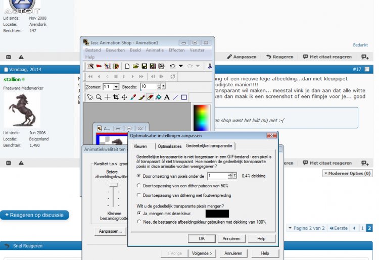 Weet iemand hoe je die transparantie gebruikt in animation shop want het lukt mij niet :-(