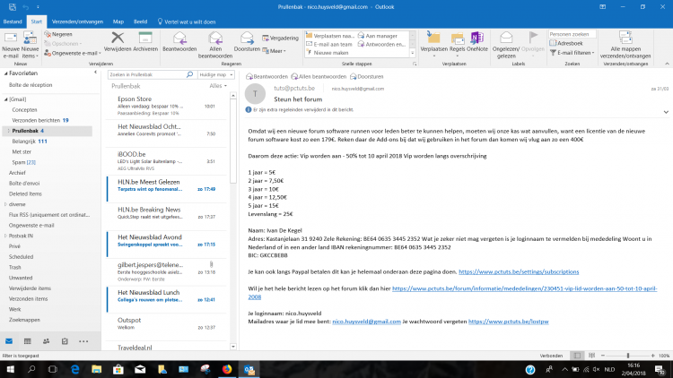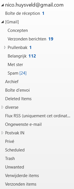 Nu blijkt dat er een bepaald aantal mappen in het frans staat bij mijn outlook ( zie schermopname in bijlage ).