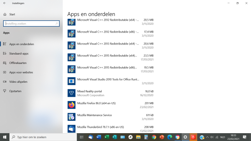 Voor het geval die C++ Visual ... je aandacht zouden trekken - die zijn wel degelijk nodig voor diverse programma's. Maar zoals je kan zien stellen die amper iets voor qua omvang en het zijn geen achtergrondprocessen op zich, dus belasting geven die absoluut niet.