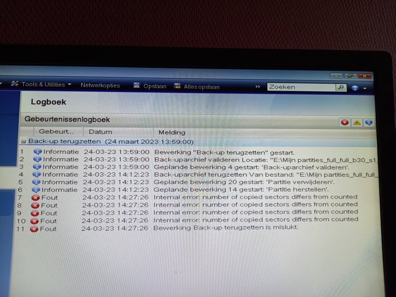dan maar nieuwe installatie gedaan wat wel lukt en dan een backup terugzetten lukt ook niet krijg de melding terugzetten is mislukt
