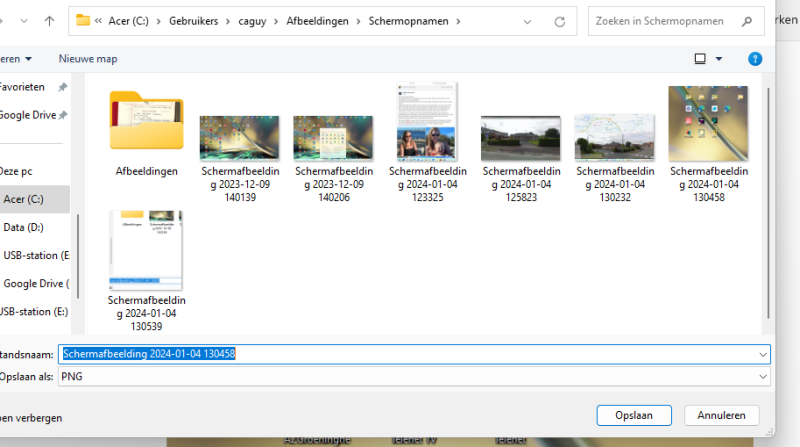als ik in mijn Windows 11 en schermafbeelding opsla gaat het altijd naar PNG