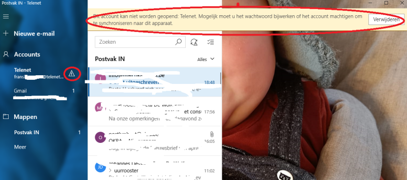 Ik lees steeds mijn Telenet mail mbv Mail van Windows10. Nu krijg ik de laatste tijd deze foutboodschap (zie bijlage).