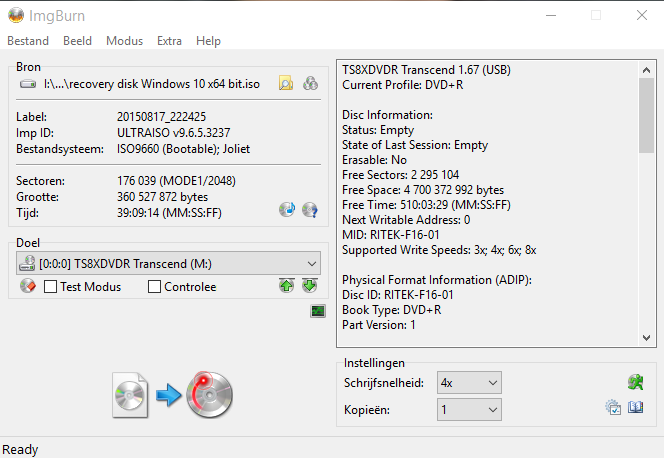 je gebruikt imgburn vermeld je ...let op dat je maximaal brand aan de snelheid x4 ...