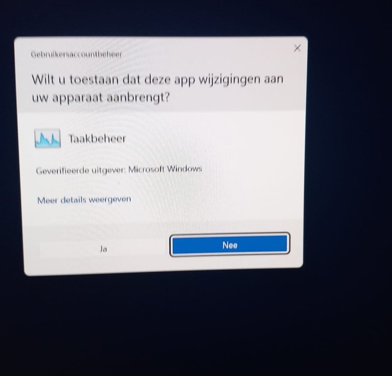 Als je iets wilt doorvoeren en geen rechten hebt dan wordt het scherm onduidelijk en donkerder waarbij je [administrator toestemming] moet geven.
