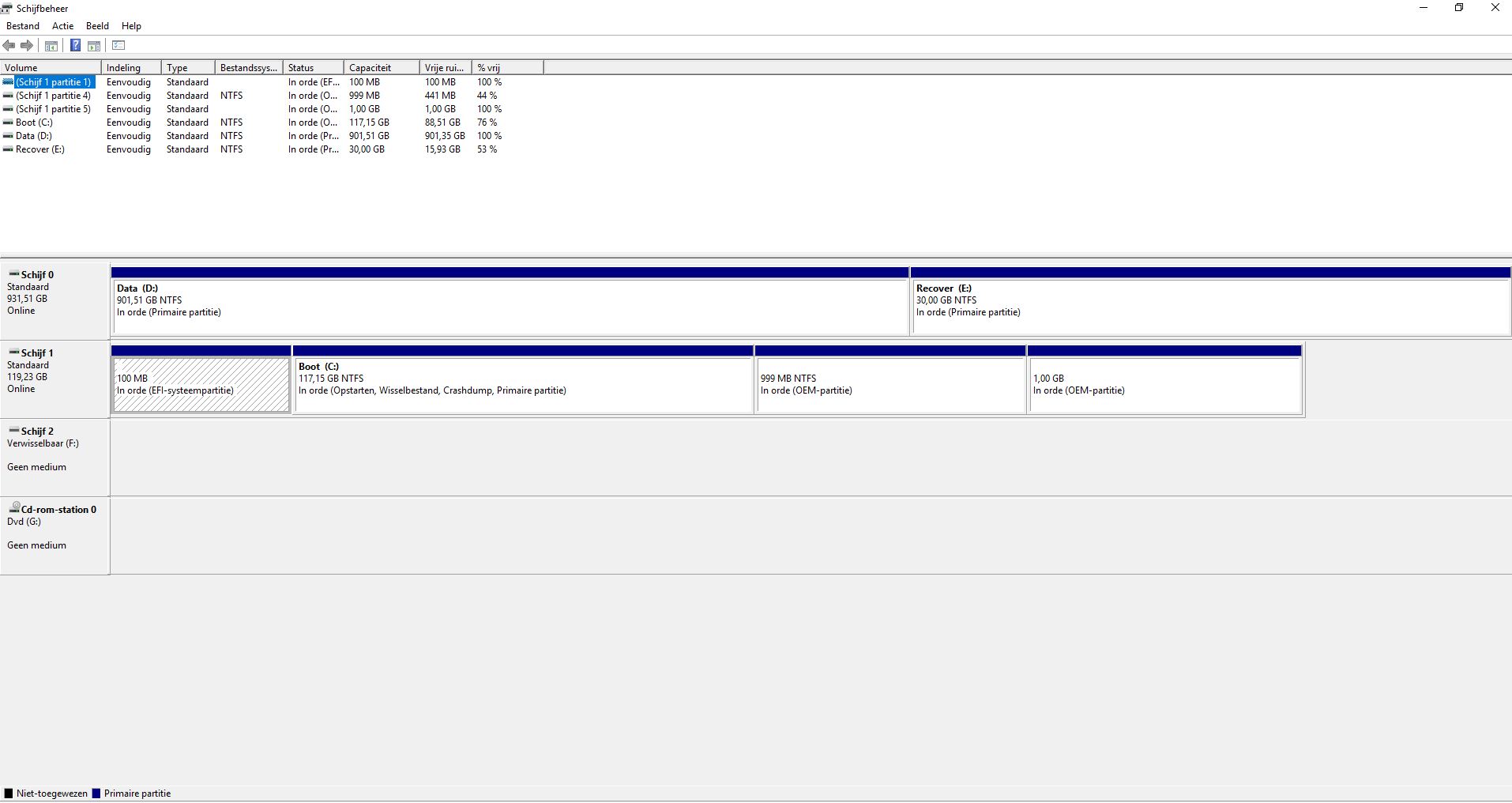 Toen ik mijn pc net nieuw had heb ik een afbeelding gemaakt van schijfbeheer zie afbeelding 1,