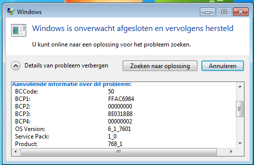 Ik krijg een bleuscreen en herstart als het prog opstart.Uitleg van Windows is privacibeleid en softwarepiraterij.