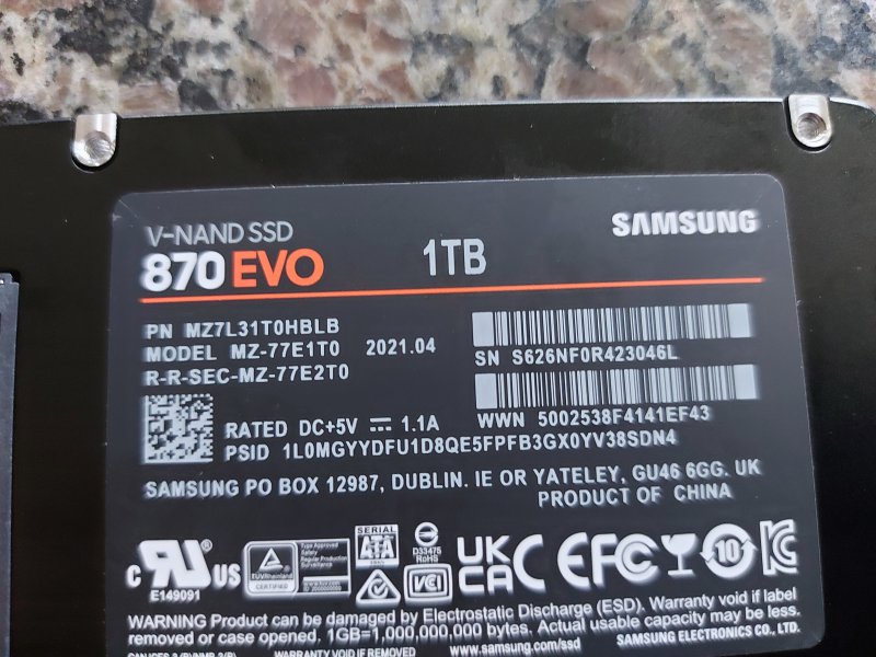 Mijn probleem is nu dat ik een Samsung 870 EVO 1Tb heb aangeschaft die mijn HDD van 1Tb moet vervangen.