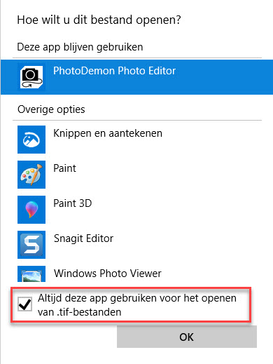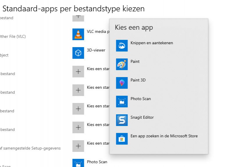 Ik wil mijn fotobestanden (.jpg) koppelen aan een zelfgekozen programma. Vroeger kon ik dit via het scherm "Standaard-apps per bestandstype kiezen". Nu merk ik in mijn huidige windows versie (20H2) dat ik niet meer vrij kan kiezen. De mogelijkheid om naar een programma te browsen is niet meer voorzien. Enkel enkele door MS gekozen programma's en zoeken in de store is nog aanwezig. Het programma dat ik wil gebruiken (Photo Deamon) staat niet in de lijst. Voor de herinstallatie van mijn Windows 10 kon ik gewoon naar dit programma navigeren. Heeft iemand hiervoor een oplossing.