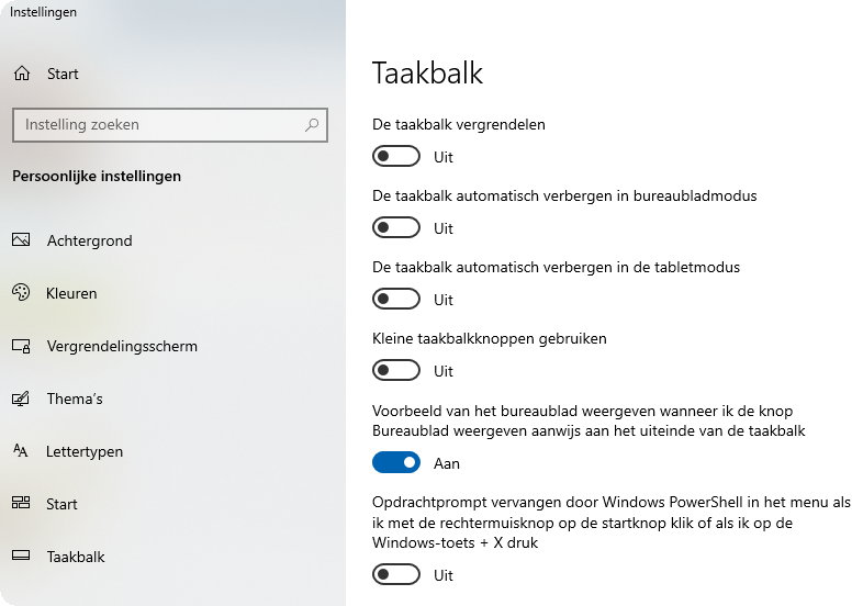 Dat staat allemaal zo allemaal al ingesteld.rechts klik op de taakbalk en kies taakbalk instellingen >taakbalk en zet de optie uit om deze te verbergen in bureaubladmodus .