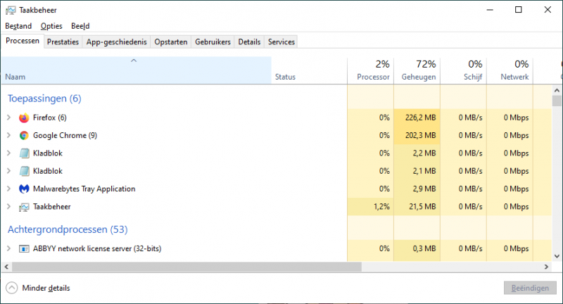 In Taakbeheer staat soms achter een procesnaam een getal. Wat is daar de betekenis van?