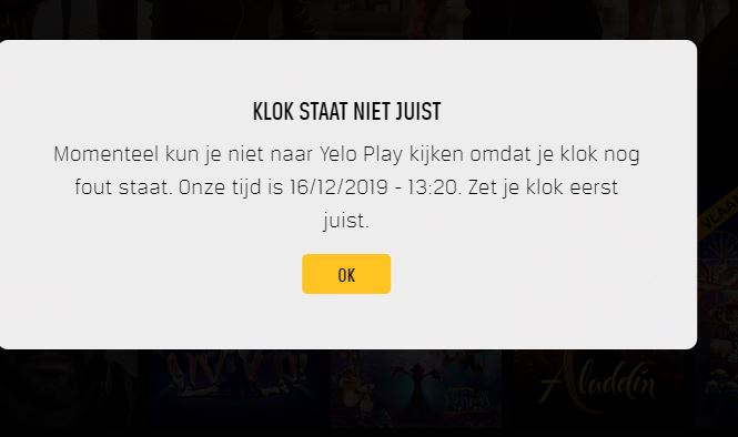 als ik op Yelo play ga meld die iedere keer dat de klok niet juist staat