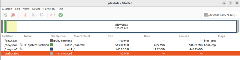 Gparted toont de partities, hoewel ik oorspronkelijk alle partities had weggedaan. Installatie van Ubuntu toelaten alles te wissen
