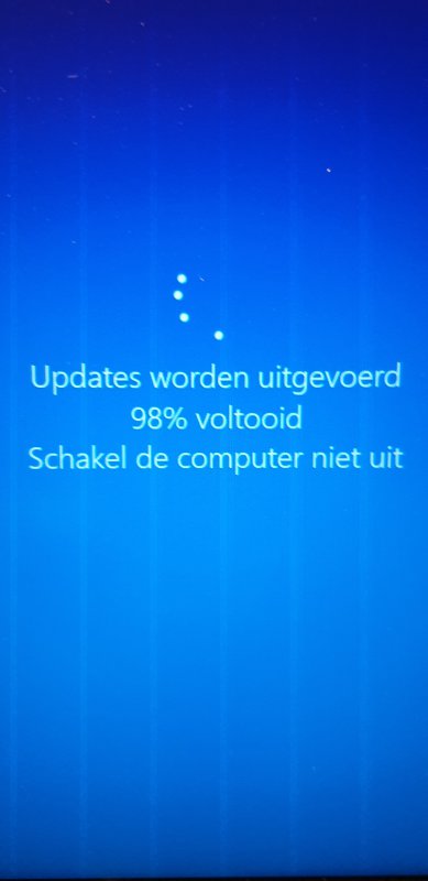 Hihi, tijdens het scherm 'You are X % there. Please keep your computer on' is er helemaal géén cursor zichtbaarzolang je de cursor pijl, met de muis, kan bewegen is je systeem NIET vast gelopen.