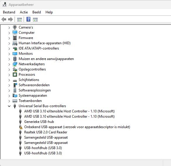 Via Driver Booster zag ik USB controller updaten, uitgevoerd en opnieuw opgestart maar géén oplossing.