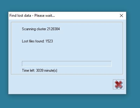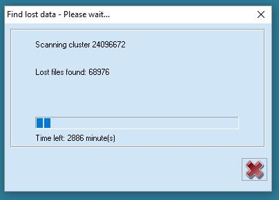 indien jij deze scan ga stop zetten omdat dit je te lang duurt dan is de kans bestaande dat er niets meer te recoveren valt .