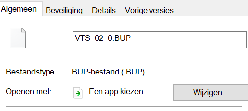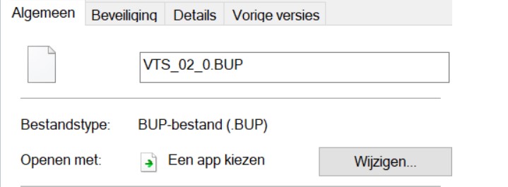 2 nu zie ik dat het bup bestand bij eigenschappen staat op openen met vcl. bij de andere staat bij eigenschappen openen met een app kiezen.kan dit kwaad of kan ik dit herstellen?Liefst niet zo moeilijk .