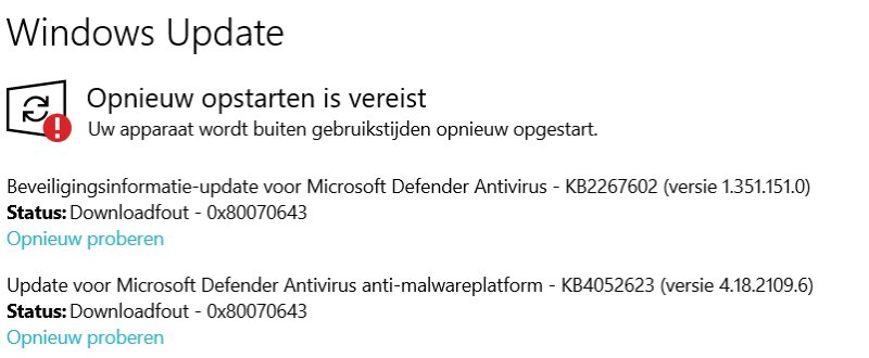1. Bij Windows Update vond ik: downloadfout 0x80070643