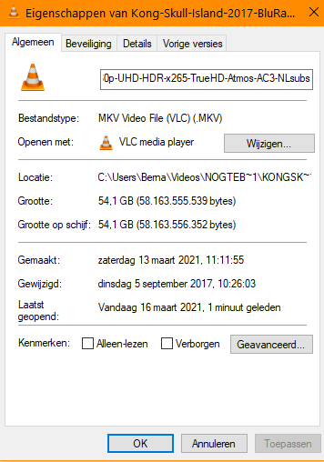 Ik heb de film "Kong Skull Island 2017 " gedownload van Spotnet. Dit is een film van 54 GB. Het bestandtype is MKV Video File (VLC) (.MKV). Ik kan het niet afspelen met VLC en kan de film ook niet converteren naar MP4.