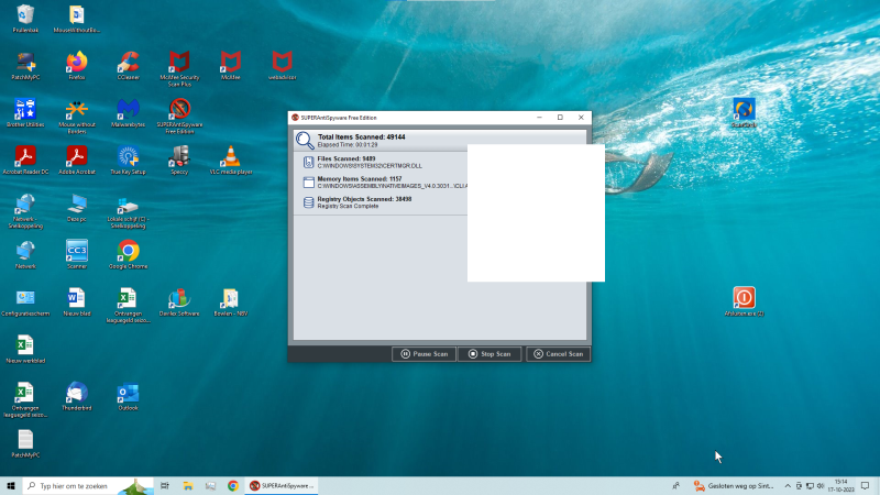 Daarvoor zaten er opeens strepen in het witte vierkantje. (Windows 10).