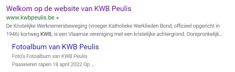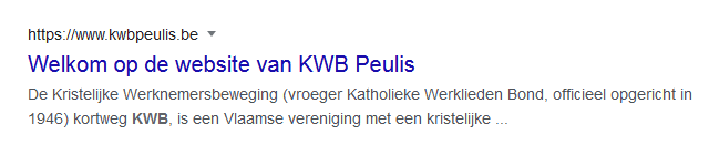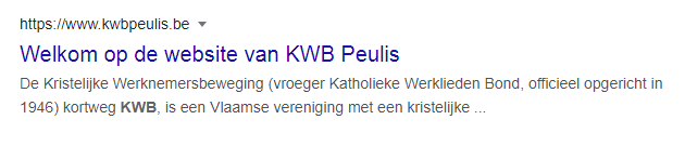 Wanneer je in Google zoekt op Kwb Peulis krijg je onderstaand resultaat: