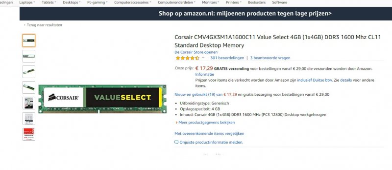 In desktop zit momenteel 4GB ram, wil er nu 4 Gb bijplaatsen, maar kom er niet uit welk, dit is hetgeen die erin zit (zie foto) test gedaan met intern geheugen en die zegt dat er eentje in moet van 1600 MHz, klopt dit, want hoe controleer ik nu wat er nu in zit, op de module staat dit niet vermeld.