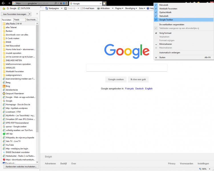 plots ben meerder linten kwijt in I.E 11 waar onder andere de favorieten stond