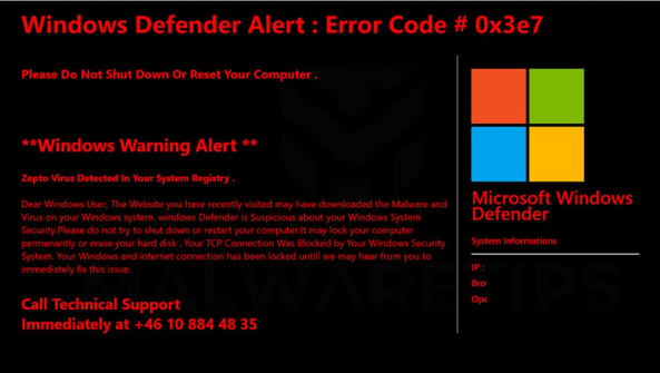 welke browser gebruik je want dit is duidelijk een valse melding die dus niet van de Windows Defender zelf komt ..