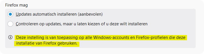 m.a.w. de instelling betreffende het controleren op updates in de firefox om u te laten beslissen of je deze al dan niet wenst te installeren word niet behouden ...