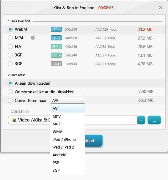 Hier de keuze met een andere Video downloader.