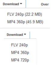 Bij het ene filmpje heb je de keuze uit FLV 240P en MP4 360P (mindere kwaliteit dus).