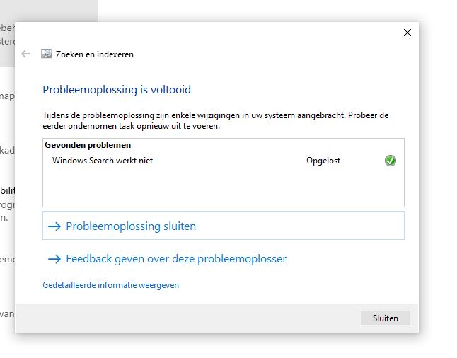 Jammer dat het nog niet gelukt is om de zoekfunctie van Windows 10 te herstellen.